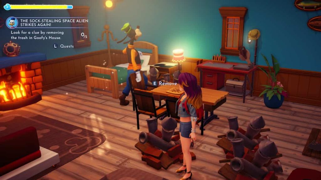 Once you destroy the trash, you’ll find Blue Fur that belongs to an animal. Interact with Goofy about the Blue Fur. You must take the Blue Fur and visit Donald Duck to complete the Sock Stealing Space Alien Strikes Again quest. After this, you need to wait for five days for the third and final sock to appear.
