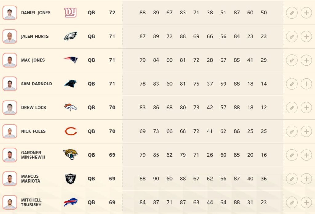 This puts Lock among many of his contemporaries that are holding on or fighting for starting jobs despite consistently poor performances. The Chicago Bears’ Nick Foles is the only other quarterback with a 70 overall rating.