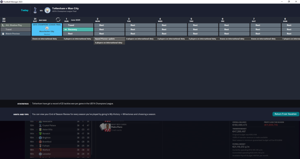 This practice allows you to advance the days faster in FM23 and you can skip events you don’t want to partake like a particular match, if you’re running a club. The vacation feature can be helpful if you want to take a look in the future and see how some of the best wonderkids in the game develop, which clubs become dominant, or to simply advance to the next edition of the FIFA World Cup.