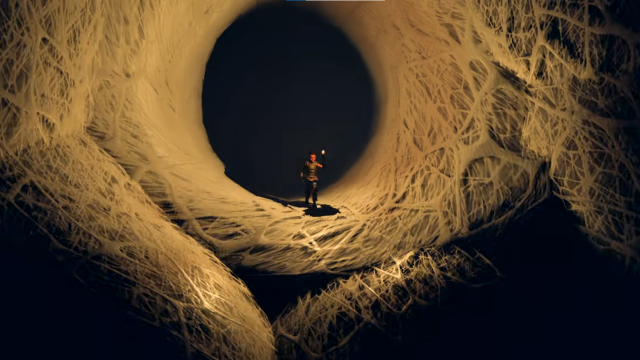 Spot the zipline in this area and hop onto it, following the branches that lead you to the frisbee stuck in the hedge. Make your way to the right of the frisbee to find the opening of the Broodmother’s den.