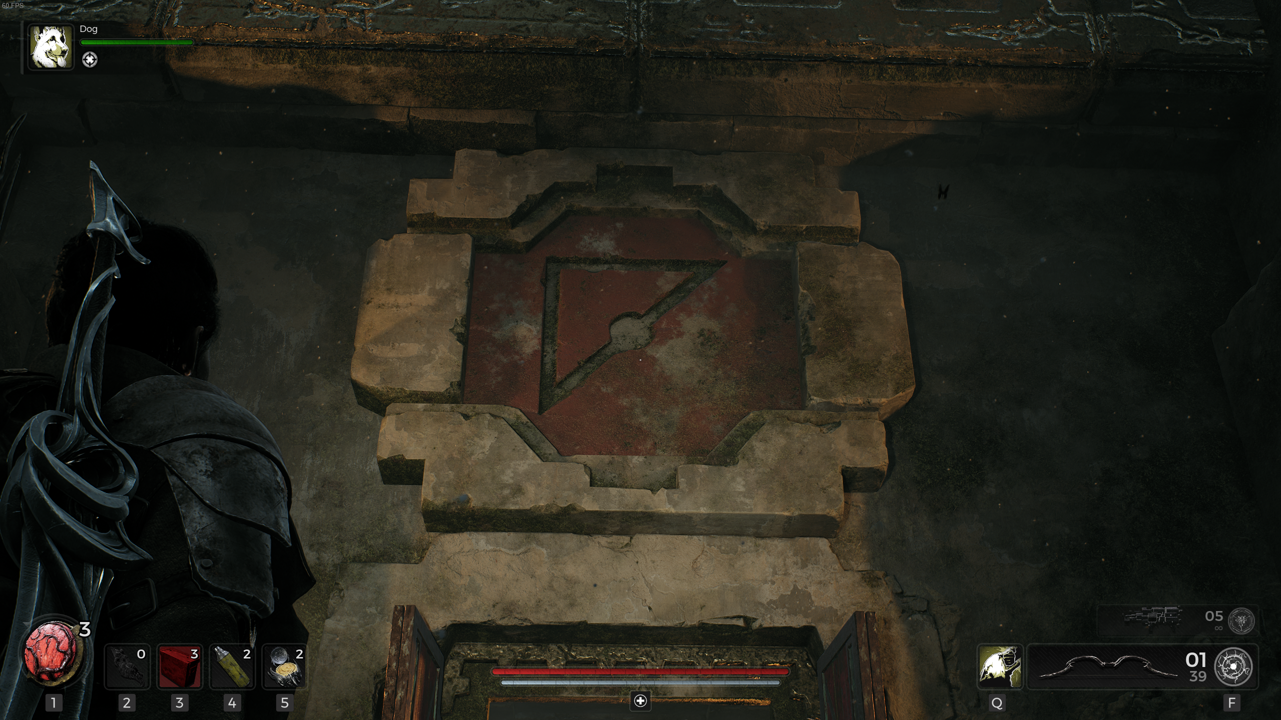 To open the door with the Calamity symbol, first head to the lever facing the door. For us, this was the lever that moved the sundial’s biggest arm, the one with the two circles at each end. You want the triangle shadow to face in the same direction as the symbol above the door. This means the triangle should point to the left.