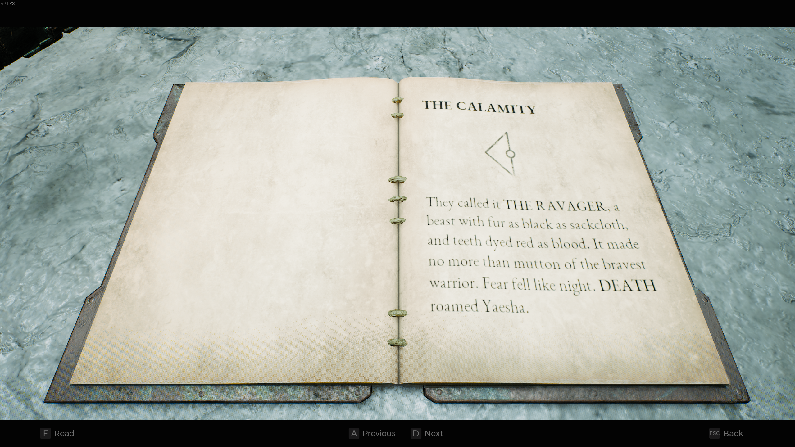 As you explore the cathedral, you should come across a small library, as shown in the video below. In this room will be a book, which begins with six symbols representing six characters: Ravager, Doe, Death, Moon, Sun, and Life. If you flip through the book’s pages, there will be three chapters, each telling a tidbit about Yaesha lore. The chapters are each represented by a unique triangle symbol, and in each chapter will be three to four uppercase words corresponding to the characters listed on the book’s starting pages.