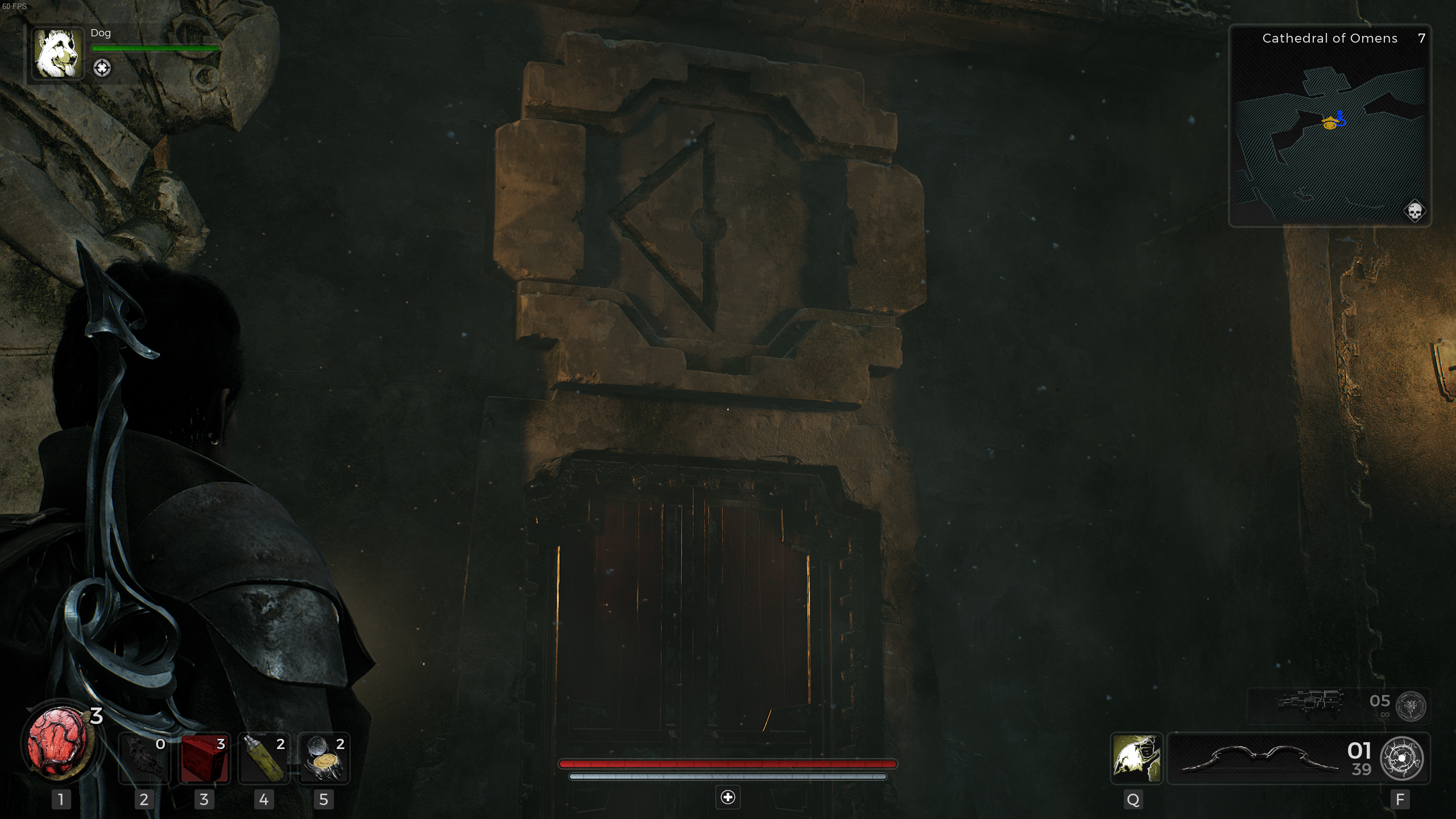 In the Cathedral of Omens, there are two locked doors. Above each door is one of the triangle patterns that correspond to a chapter in the book. To solve the Cathedral of Omens puzzle, you need to adjust the shadows on the ground so the correct character symbols are circled, depending on the chapter of the book that corresponds to the door you’re trying to open.