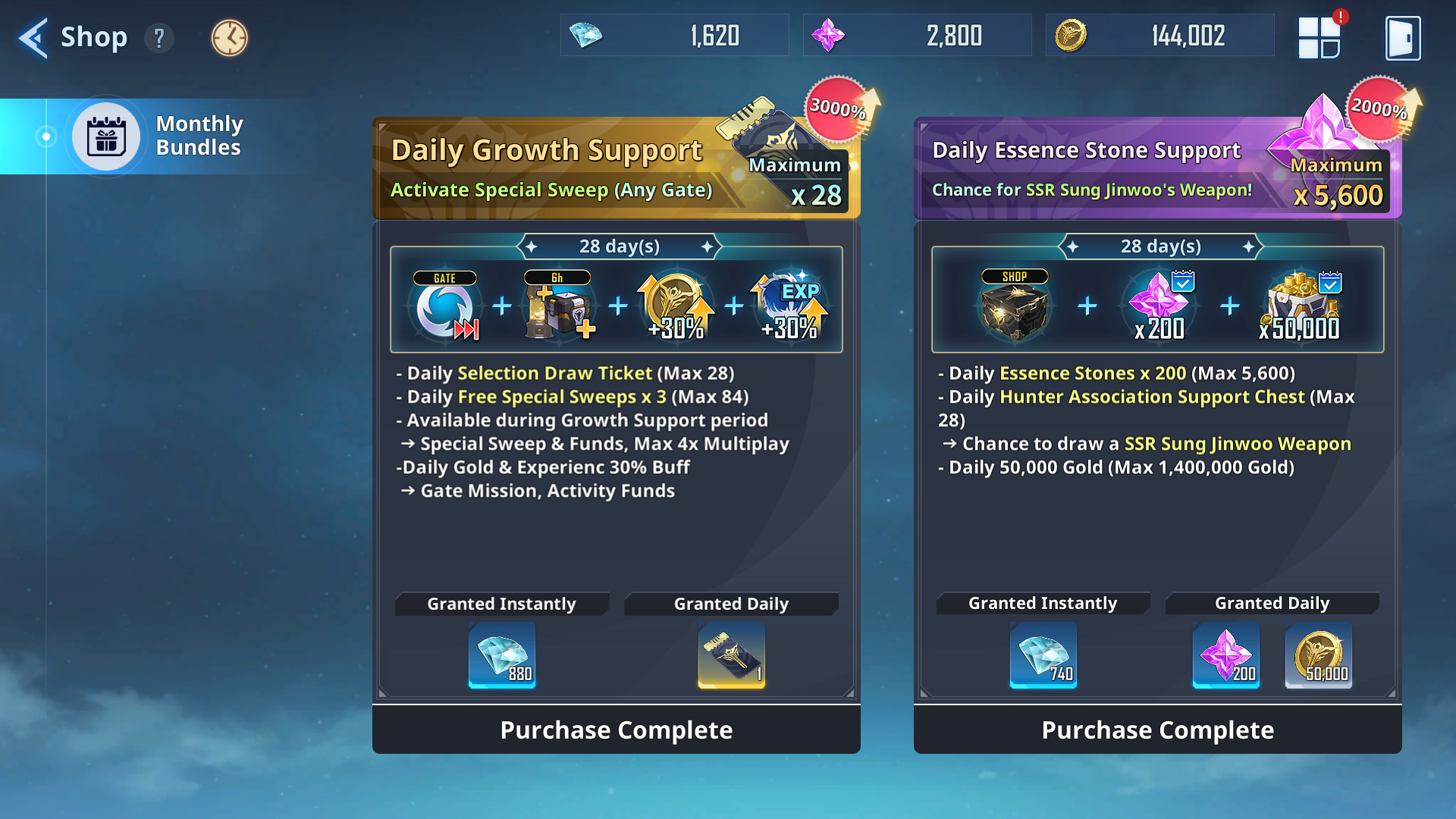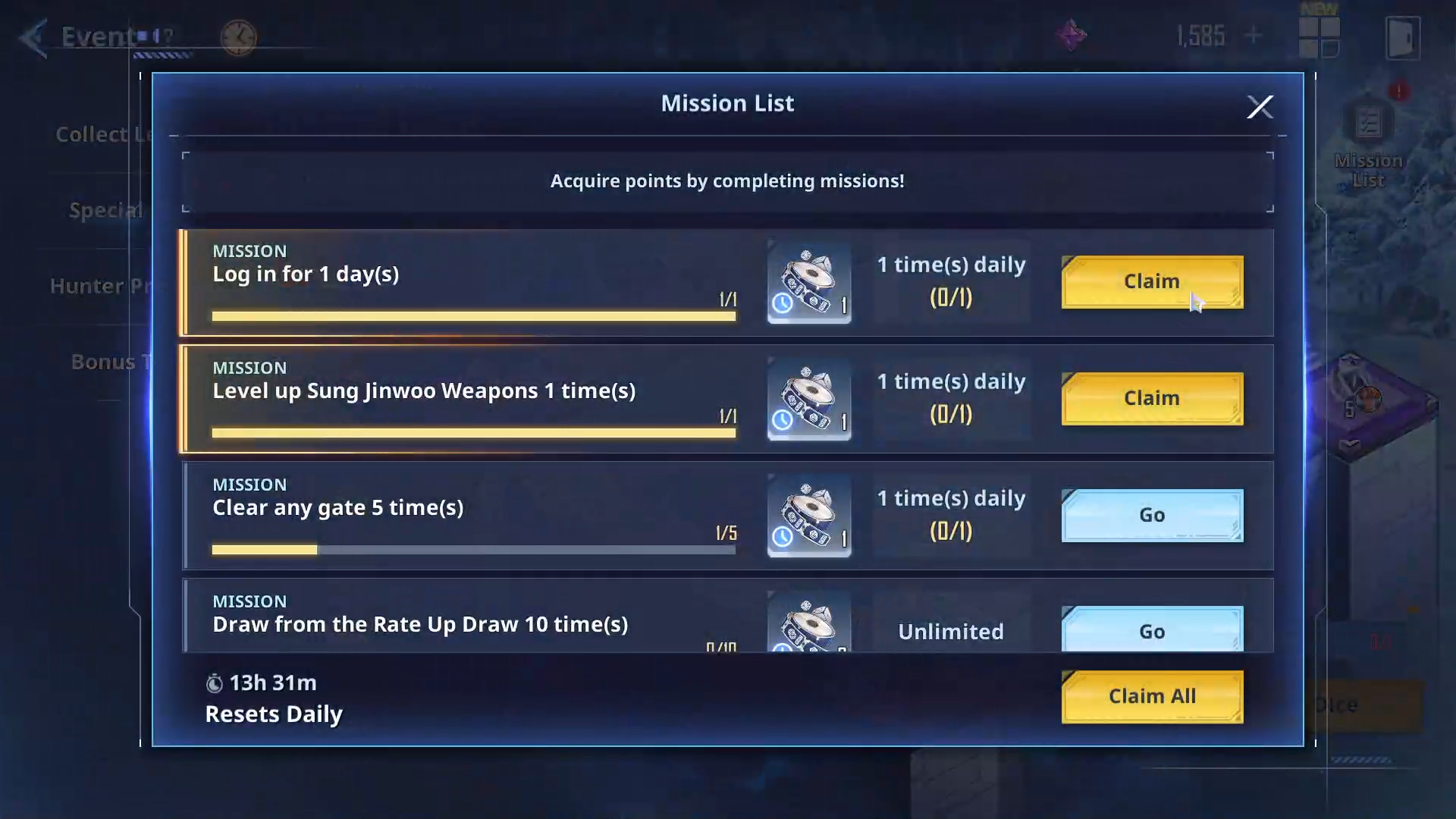 But the most controversial features are Solo Leveling: Arise’s gacha system and its multiple currencies. You’ll collect Gold coins, Essence Stones, and Diamonds, each of which serves a different purpose, with Diamonds purchasable with real money. You need Diamonds to buy Essence Stones, which you need for gacha tickets that let you spin for a chance at getting new hunters.