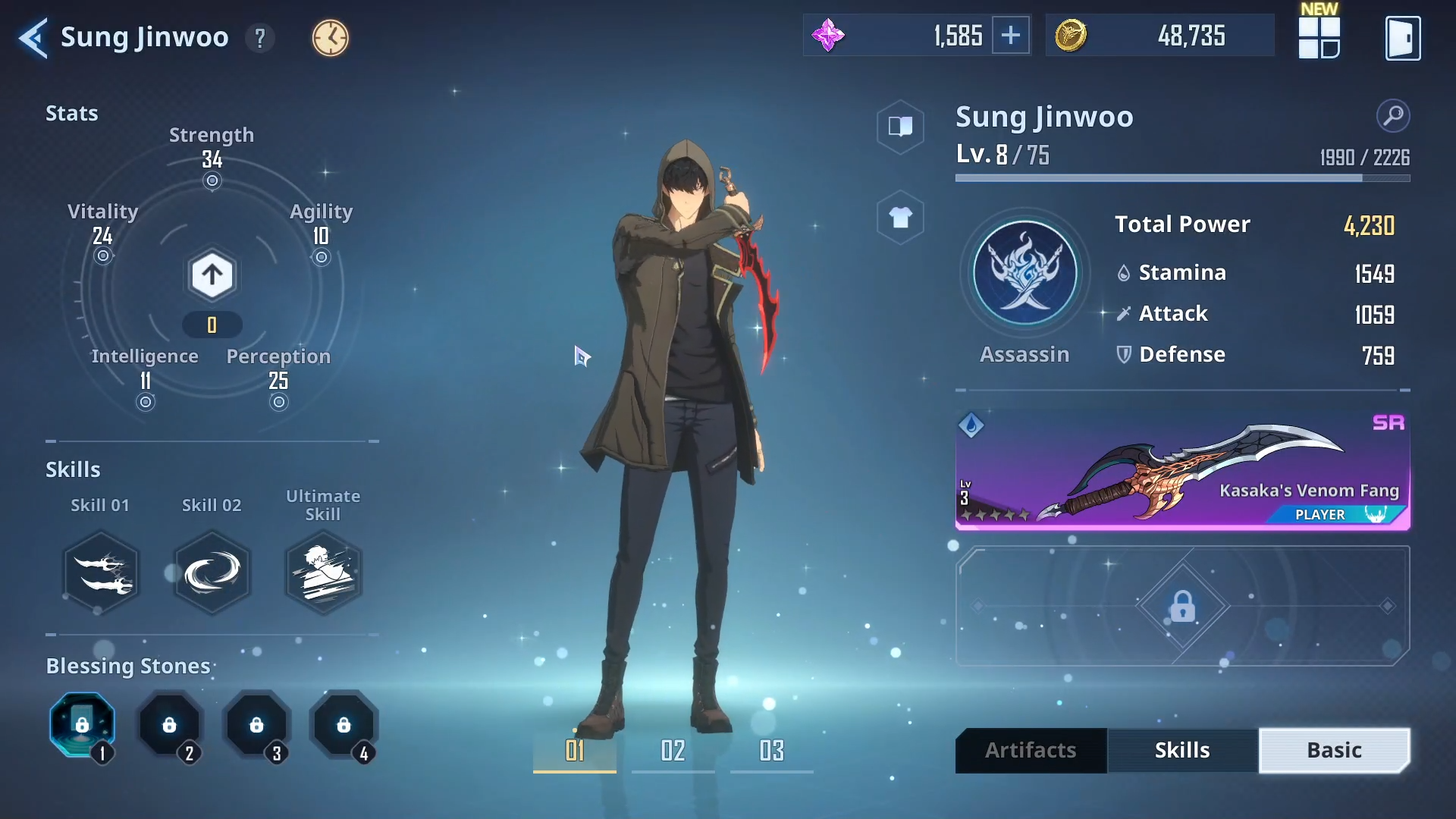 But despite these shortcomings, Solo Leveling: Arise’s simple yet effective combat system lets you experience Jinwoo’s evolution firsthand, breathing life into the character’s remarkable transformation. You can pick your weapon of choice and choose which skills to use in combat, tailoring Jinwoo’s skillset to your preferences. Personally, though, I chose to live out the fantasy of becoming the Shadow Monarch by sticking with the default settings and abilities.