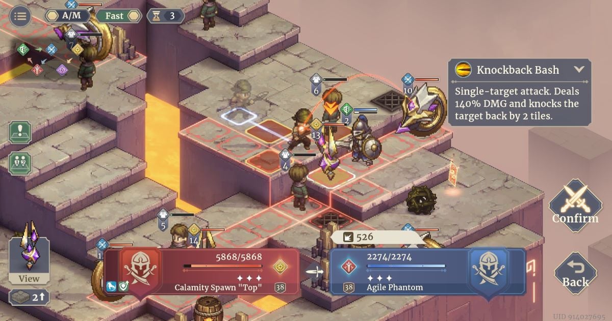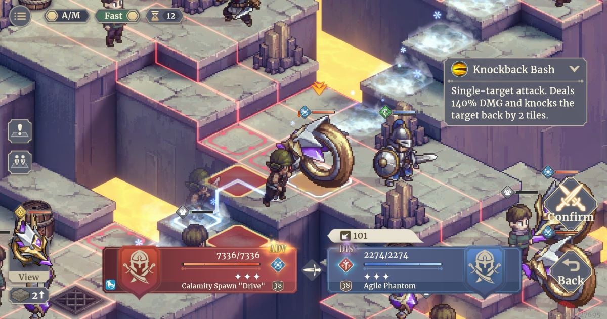 - Send the “Agile Phantom” Breaker unit right up to the Calamity Spawn “Drive” and use Knockback Bash to send it one tile to the northeast.