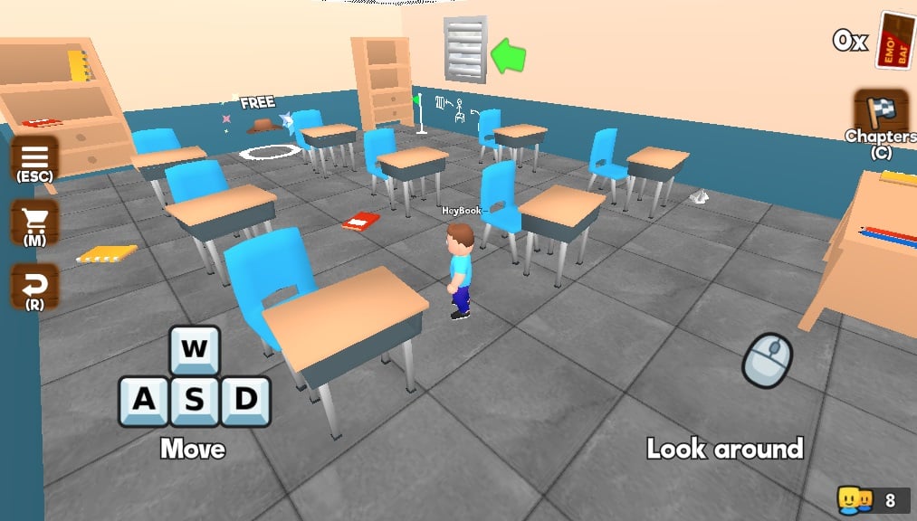 The game isn’t all about brain-teasers—you’ll also need to employ parkour skills to navigate certain sections. As you explore, keep an eye out for cosmetic items scattered throughout the school, which can be unlocked through short tasks or by watching ads.