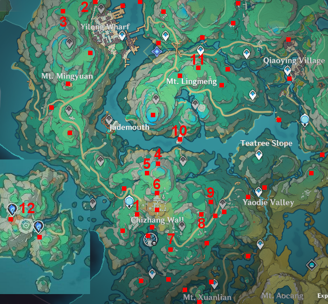 There is a total of 50 Spirit Carp to collect in Liyue’s Chenyu Vale. Here is a map of their location.