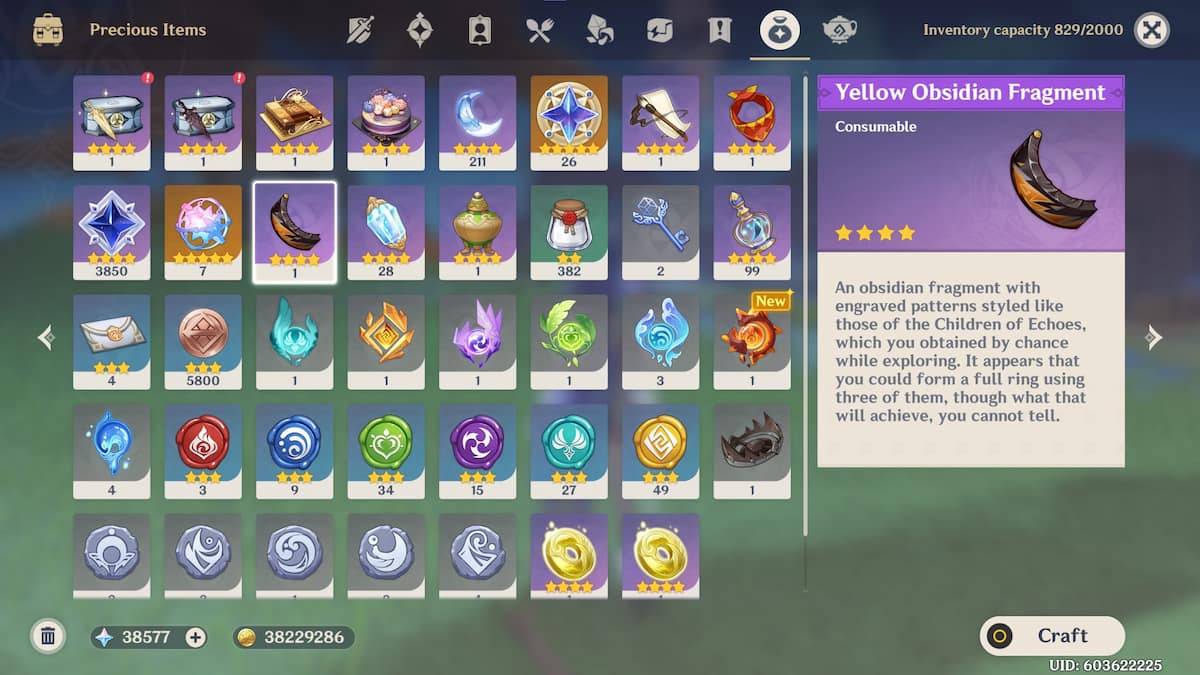 Once you’ve collected three Obsidian Fragments of the same color, open your inventory and use the Craft button to form a Yellow, Azure, or Green Obsidian Ring. The Obsidian Ring will remain in your bag until it’s consumed to open a barrier in front of a Treasure Trove.