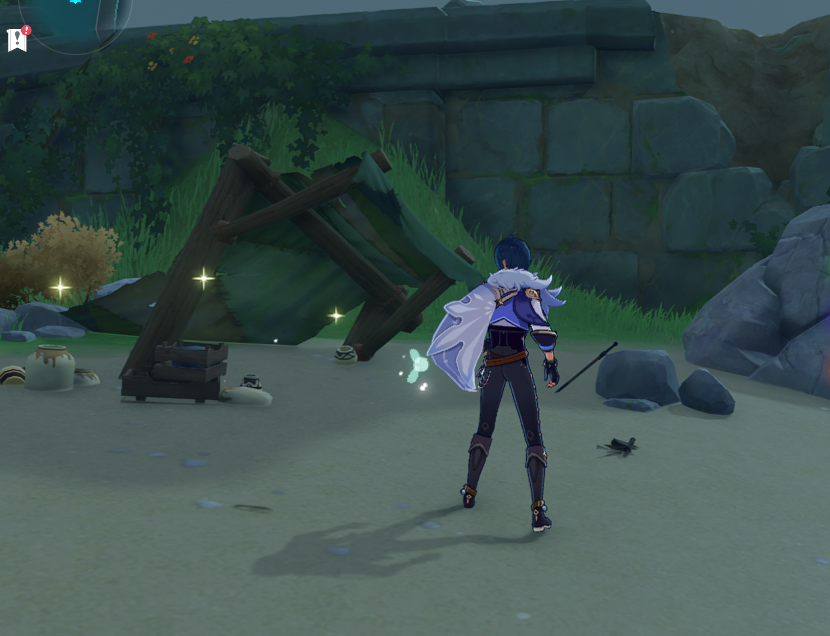 Once you’ve reached the correct area, defeat the hilichurls around the sundial and wait until 2AM again and spot wind clusters using Elemental Sight one more time.