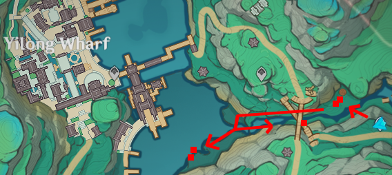 Teleport to the top of Teatree Slope and start by gliding on the west. You’ll see turtles you can mine Jade from. Then, teleport back and head east instead. You can find more stones along the way and around the body of water. Several pearls of water hover on top of it so you can get around faster than swimming.