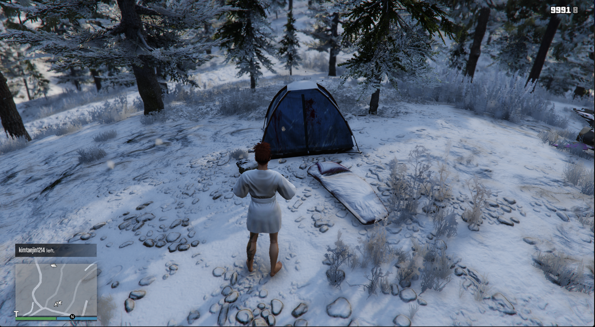 The next clue is a bloodied, unoccupied tent that must have belonged to the poor camper that you found in the previous clue. This tent can be found just North of the first clue, if you follow the road up. The third clue is a bit off the beaten path, but is still easily found since it is a car wreck with a bloody t-shirt next to it. The t-shirt can blend into the snow, so pay attention to the top-left of the screen for your prompt to examine the item.
