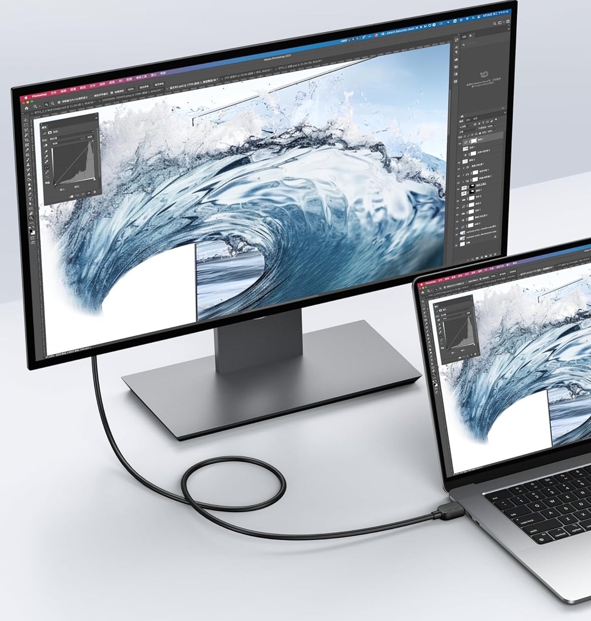 Supporting resolutions up to 8K, this cable is backward compatible with previous standards and can be used in multi-monitor setups.