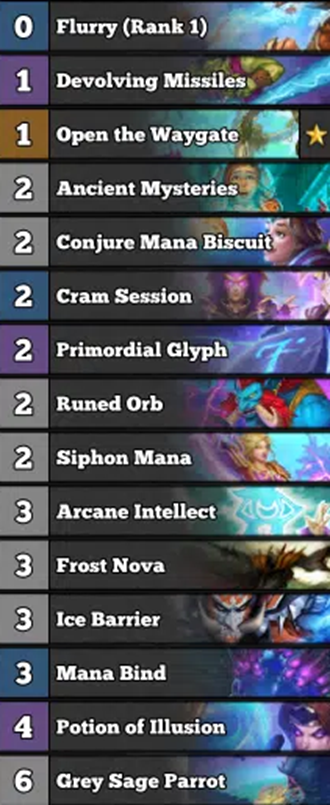 This is a finicky OTK deck with Open the Waygate. Your strategy is to replay the quest reward with Grey Sage Parrot, then use Potion of Illusion to do so again. And again. And again. Truly fun and interactive! Any added spell synergies will make this build even stronger as you progress through your run.