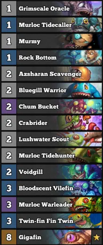 This is a straightforward tempo Murloc deck. Your signature treasure gives you some late-game potential but you need to exert as much pressure as possible, as early as possible, to perform well with this deck.