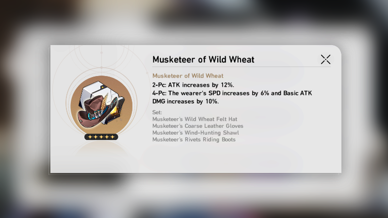 - Four-piece effect: Increases the equipping character’s Attack by 20 percent for one Round after she uses her Skill.