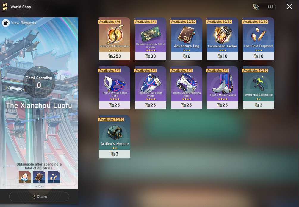 The Shadows of Preservation can be bought for 250 Strales. Those are gained through exploring the Xiangzhou Luofu and by completing Adventure Missions.