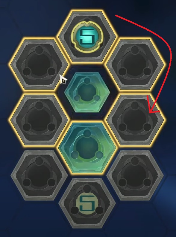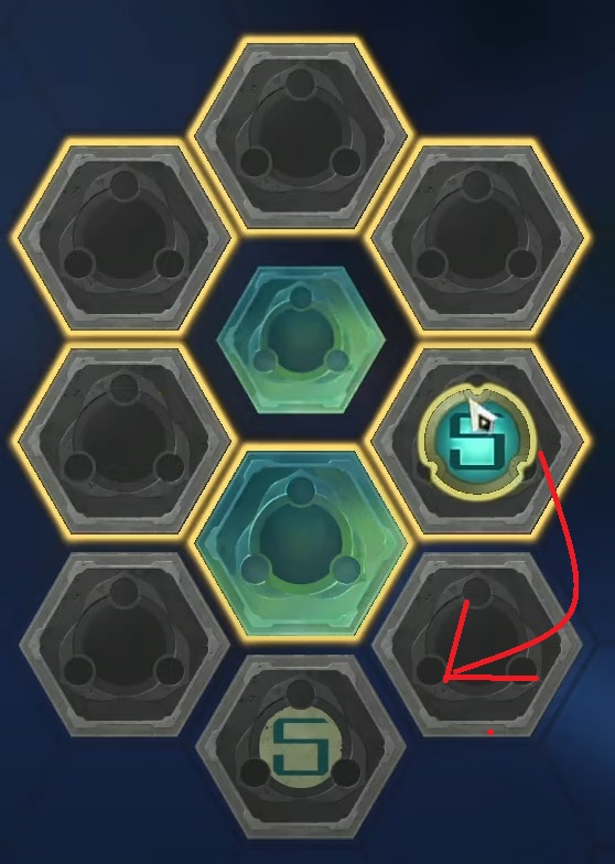 - Take control of the top computing module, the jade tile, by selecting it.