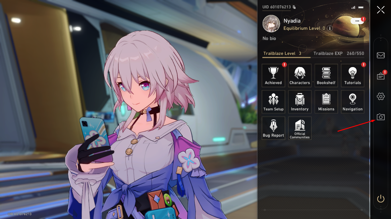 To start taking photos in Honkai: Star Rail, all you have to do is open the menu and click on the camera icon on the right side of the screen. It will become available right after you’ve finished the tutorial.