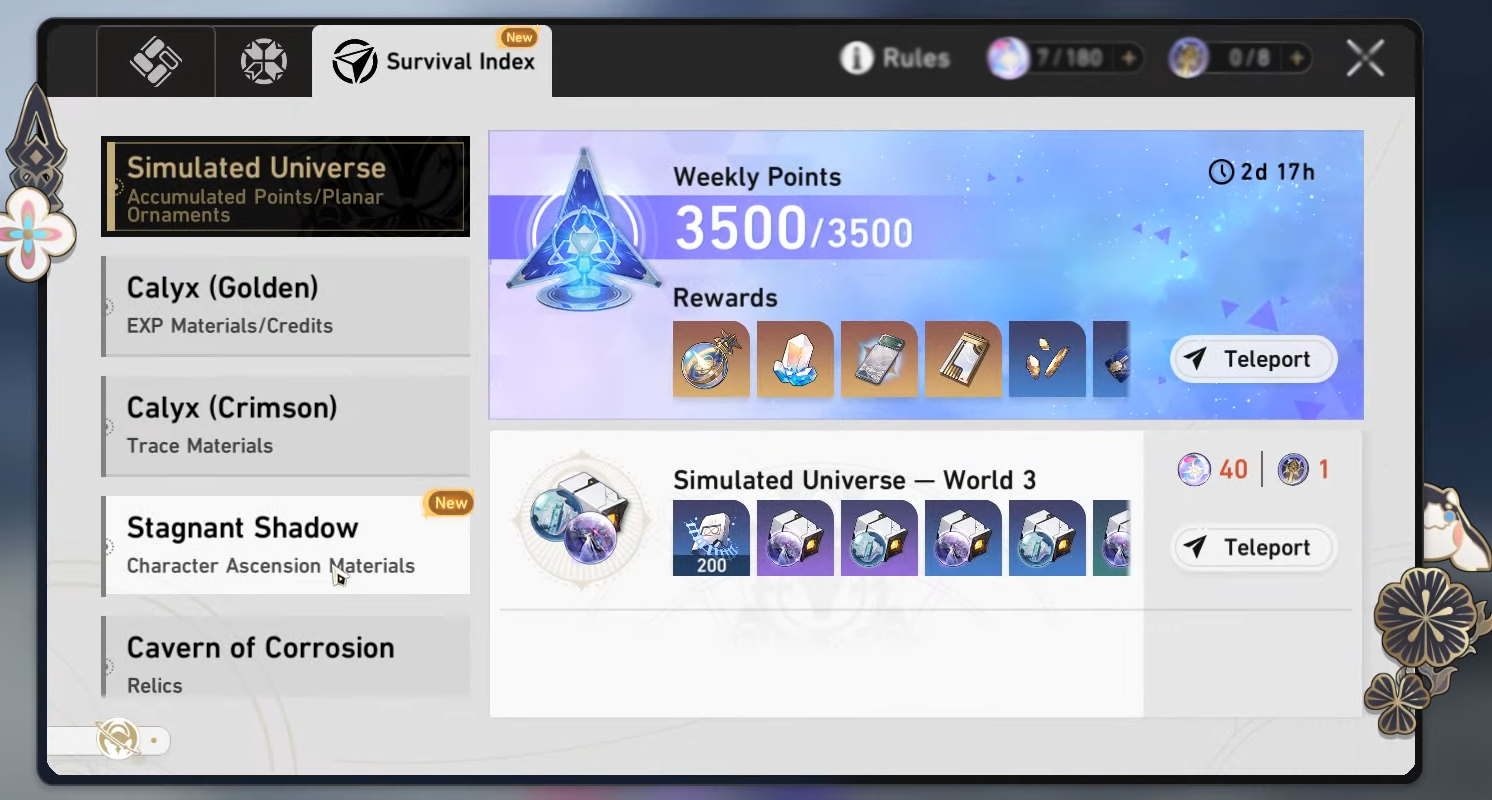 Complete it and you’ll unlock Stagnant Shadows, which are another kind of repeatable challenge specifically designed to earn Ascension and Light Cone level-up Relics. Once it’s done, you’ll see the new tab added in your Guide and you’ll be able to teleport to them easily.