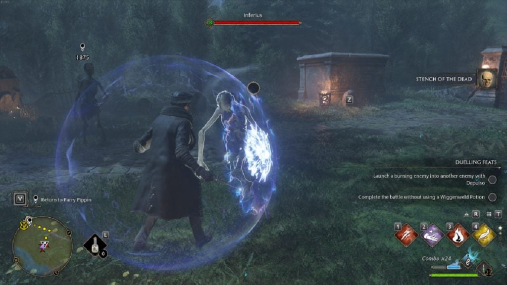 The first combination is relatively simple to pull off. First, you need to learn the Disillusionment charm from Sebastian during your trip to the restricted section of the library. After this, you will need to learn Petrificus Totalus, the full body-bind curse. Using it as a combo is quite possibly the easiest thing to do because they go well together.