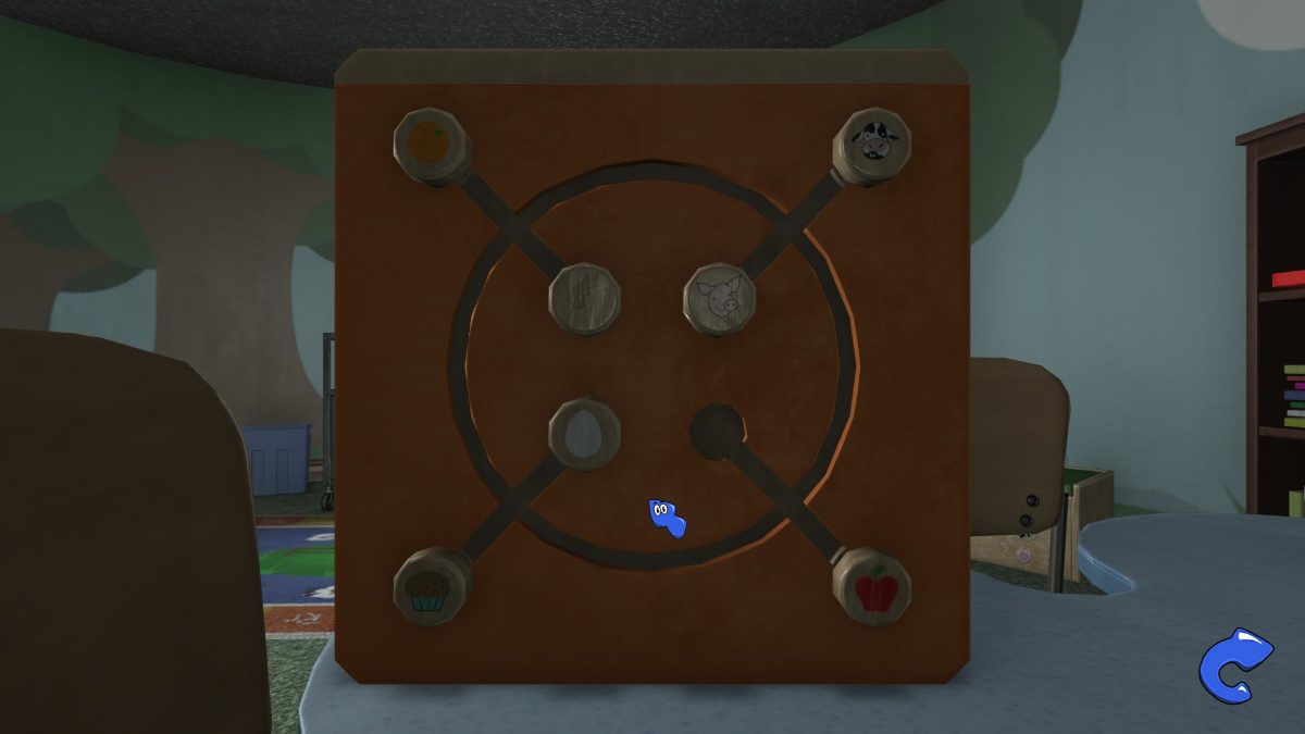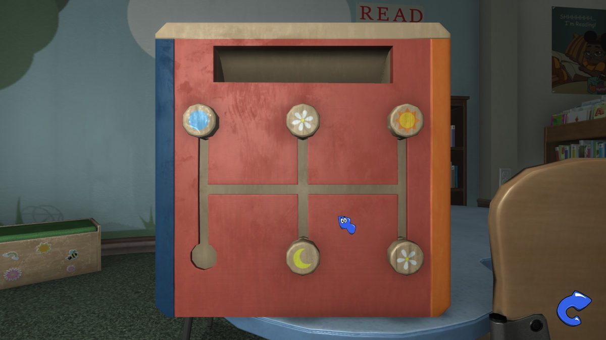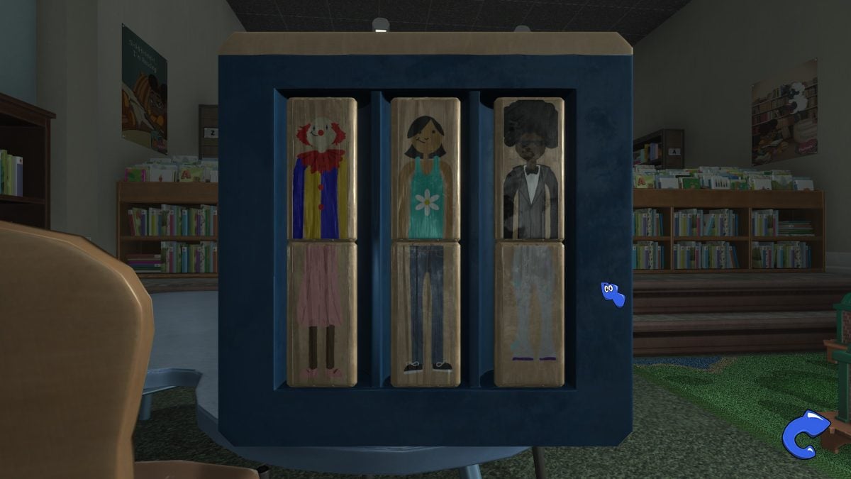 You can complete the second part of the train puzzle for the Chugga Chugga Chugga Chugga achievement as soon as you unlock Kate’s office. You only achieve this by handing the Wooly doll to Amanda’s monster in the Let’s Find Treasure tape. Once inside the office, pick up and drop the two blue bridge parts near the Microfilm Reader and open the terrarium after playing the Let’s Fix It tape.