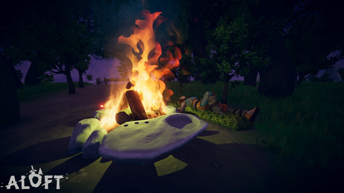 Cooking in Aloft is an engaging process. You have to actively cook each meal, holding down the F key while cooking to keep the food at the right temperature. If you stay in the yellow zone of the flame, your meal will come out perfectly, but venture into the red zone for too long and you’ll burn your food.