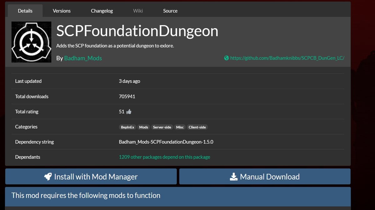 Each mod requires its own LC_API and may be dependent on other mods. In the case of SCPFoundationDungeon and Scoopys Variety Mod, you’ll need: