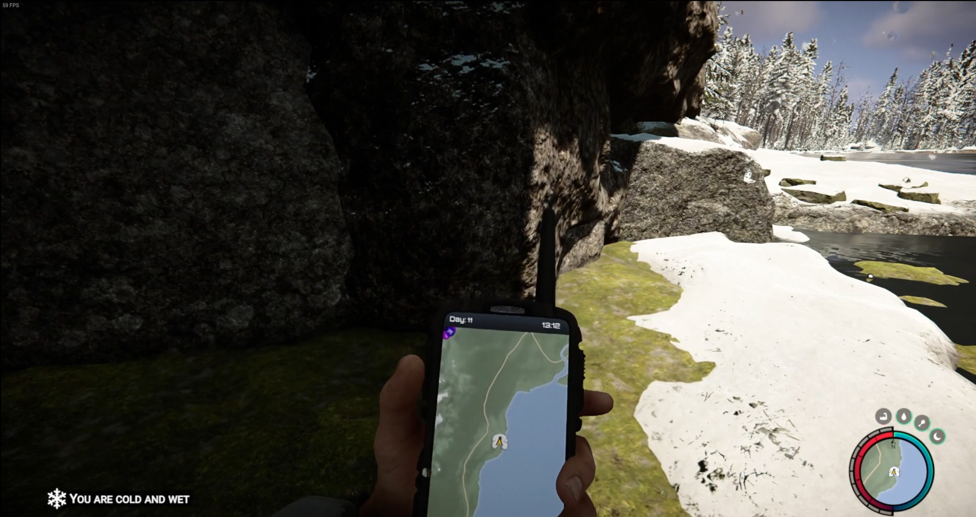 Once at the lake, you should be able to see a Lake Cave entrance indicated on your hand held GPS. Venture to the mouth of the cave and press the corresponding prompt to enter in. Use the image above as reference to help find the cave’s entry way.