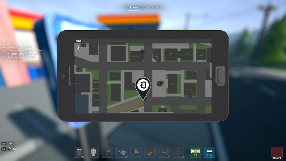 Jump to the bridge’s left side into the canal and then look at the back wall to find the hidden stash, a small black-colored locker marked with an X. Interact with it and drag the cash to your inventory and find the other two places. Go up the bridge again and to the huge fountain in front of the Town Hall. Behind it, you will find the second stash. Then, the back of the Supermarket, which is to the right side of you on the road, is where you will find the last stash to collect the last bit of money to get started.