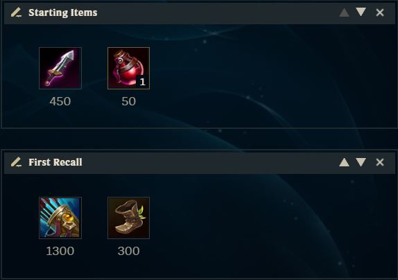 The 1300 gold item is the item that must be always rushed first. It grants you attack speed, attack damage and additional damage to minions to better last hit them and play with the wave. Get boots if you can as well or a control ward to check for vision.