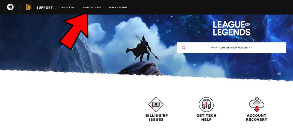 To start the process, go to the Riot support page and click on the “Submit a Ticket” tab.
