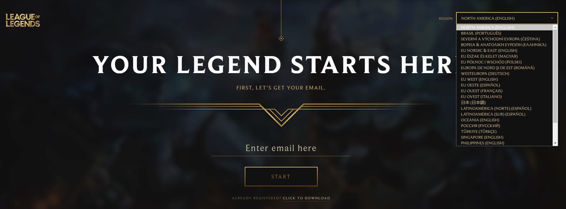 - After selecting the desired region, the page will reroute you to that region’s specific website, where you will make an account in the dedication region.