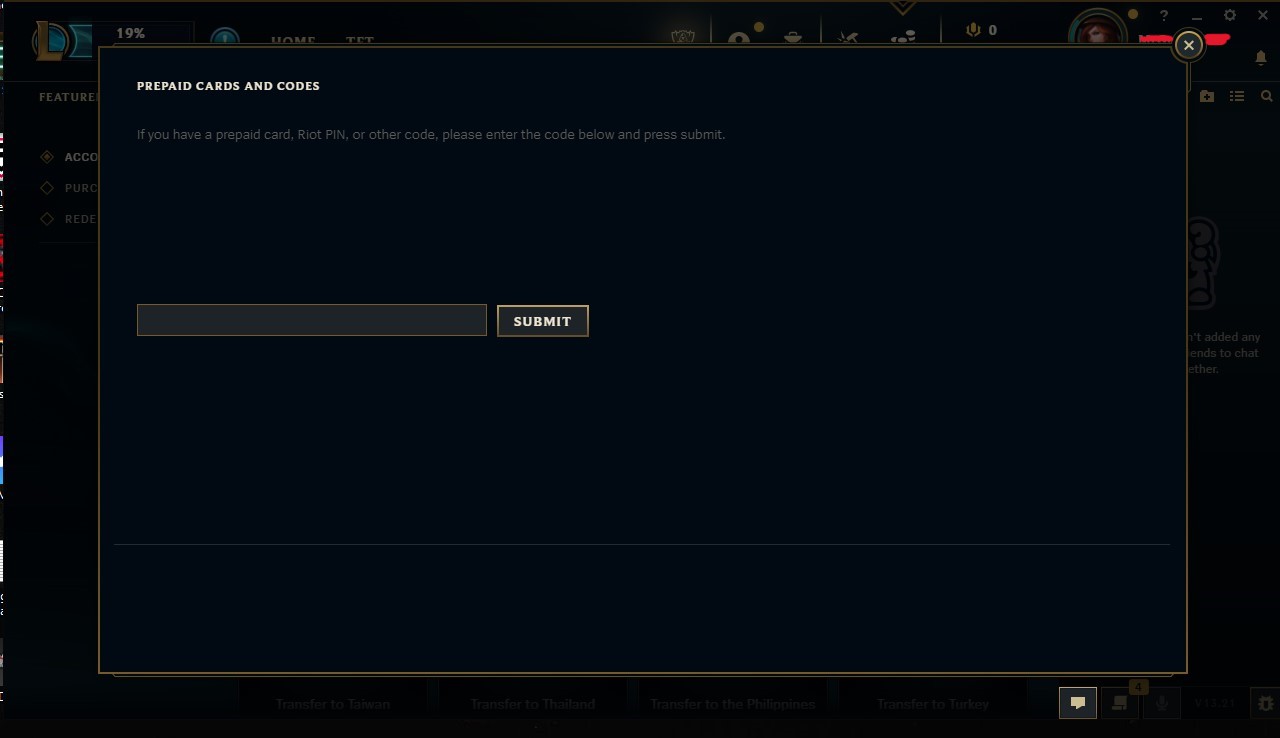 First of all, there are two methods you can use to redeem codes via the League launcher. Pick whichever one works best for you.