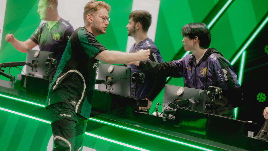 FlyQuest wait for their opponents at the LTA Championship grand finals, where they’ll face the winner of the lower bracket match between Vivo Keyd Stars and 100 Thieves. All three teams have already qualified for Worlds 2025.