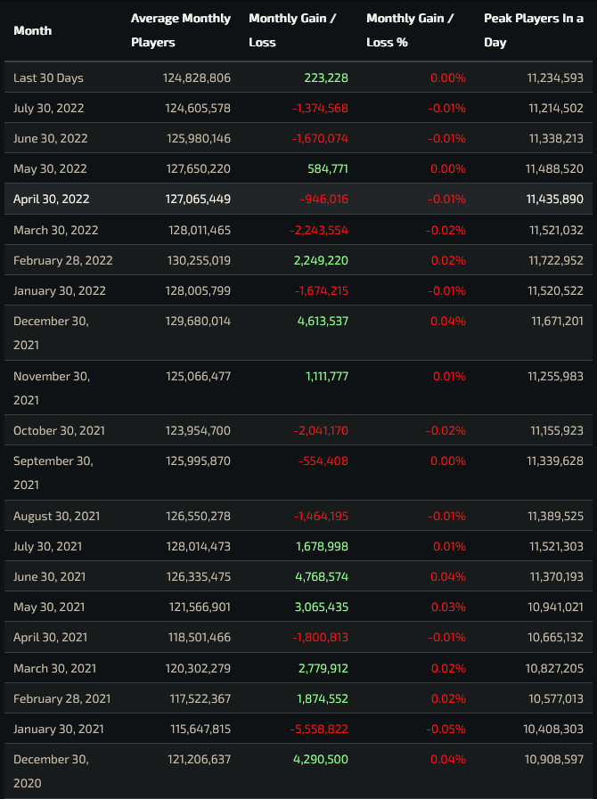 The growth of the game over the past year might not look too exciting, with a drop of around 2 million average monthly users from August 2021 to now. Yes, the player base has stagnated a bit over the course of the past year, but when compared to numbers from 2020 and 2019, there has been a massive jump.