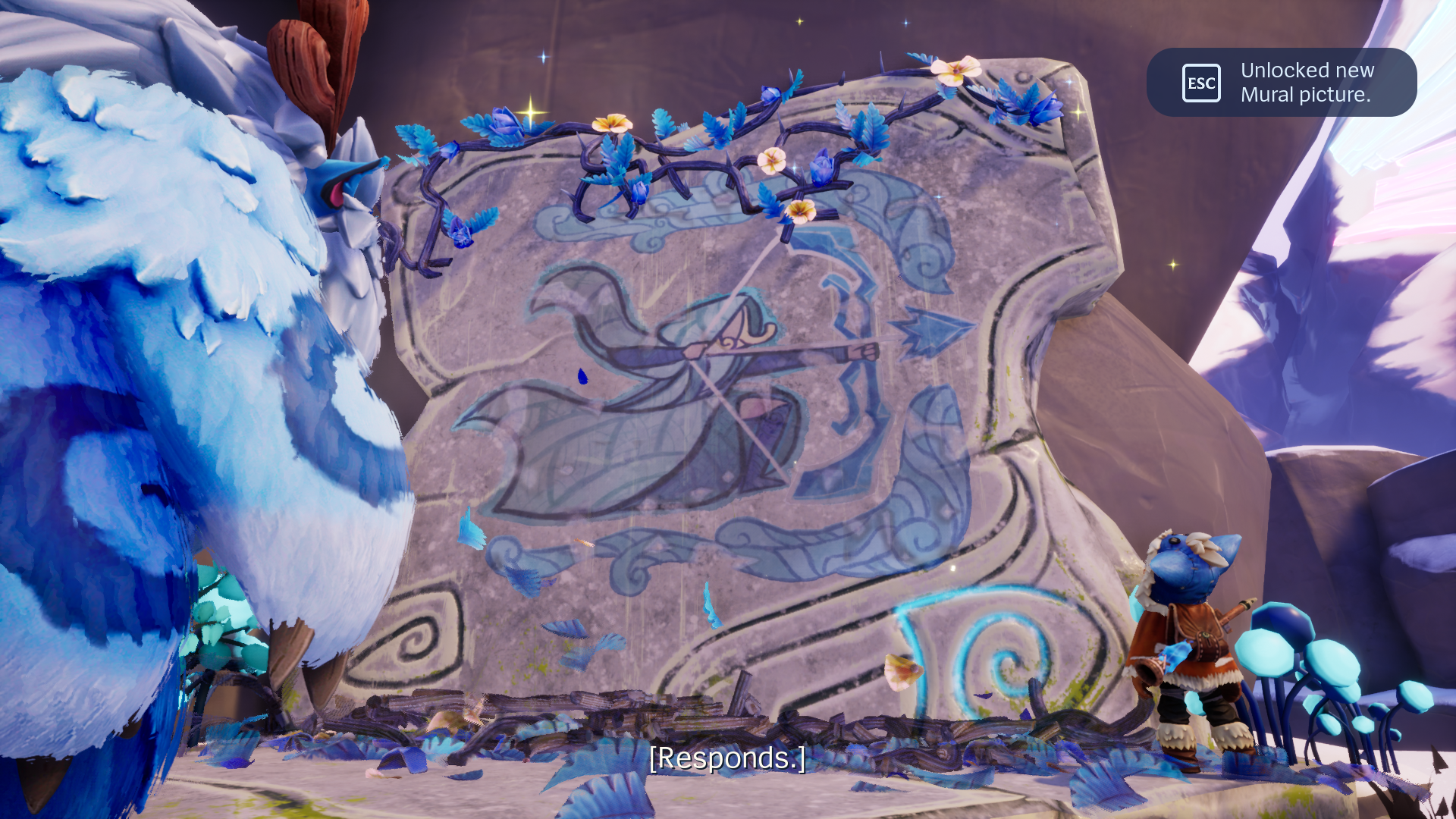 The last mural can be found in the ruins of Ramshara, the yeti’s city, following the path that will lead you to play the drum to the right of the yeti’s temple door. This mural, however, remains unfinished as it showcases the transformation of the yeti after the loss of their magical abilities during the war of the three sisters.