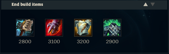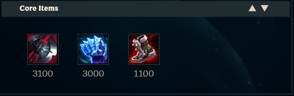 Bonuses: +9 adaptive force, +9 adaptive force, +6 armor (or +8 magic resistance against magic damage top laners)