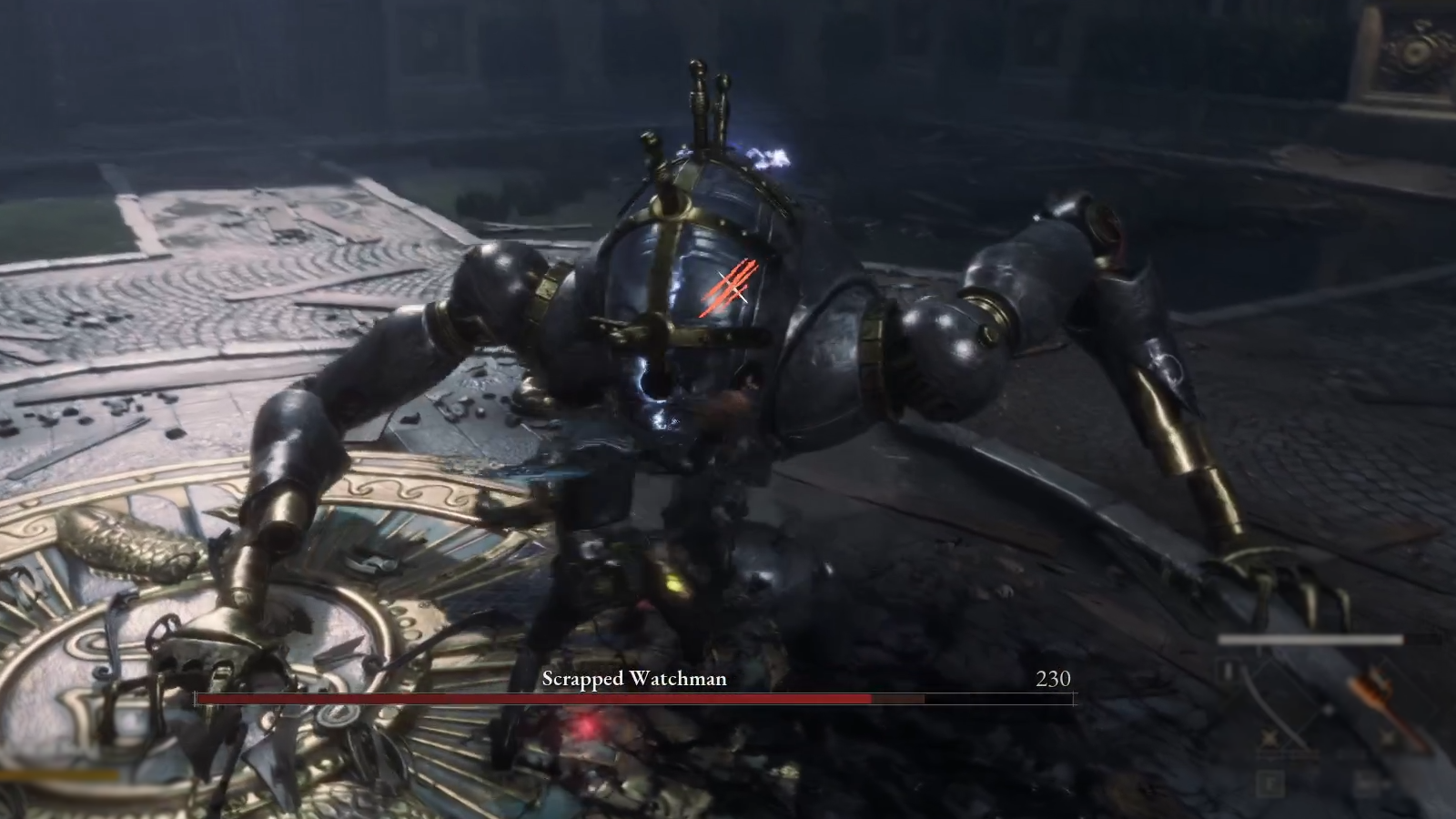 Lies of P’s main strength is its epic boss combat, and the second one might give you a hard time. The Scrapped Watchman is encountered at the end of the City’s levels and features fast and deadly attacks.