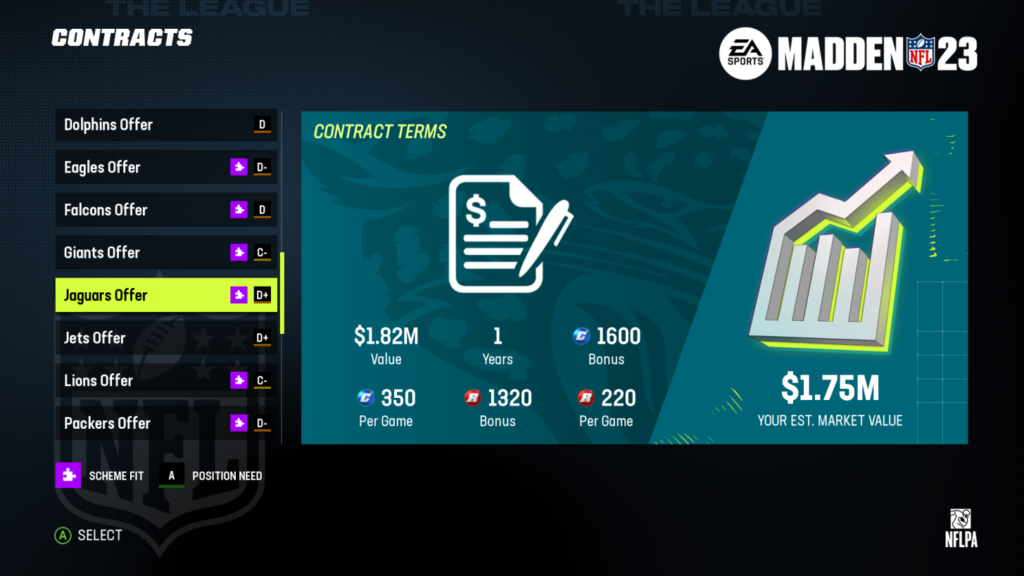 “Take into consideration things like the quality of a team’s need for a player at your position and skill level, whether you’re a good fit for their current scheme, and of course whether they’re willing to pay you above your current predicted market value,” EA said. “Those dollars and cents will matter this year, granting you things like bonus REP used for leveling your player depending on the quality of your pay. It’s down to you whether you want to play for your favorite team, and just let money do the talking.”