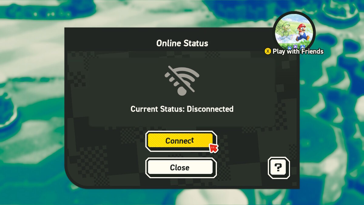 If you are beginning a new playthrough, complete the opening and enter the first world called Pipe-Rock Plateau. Go into the Main Menu with ‘+‘ and select ‘Play Online‘ on the signal icon in the right-hand corner of the menu screen. Friends can join you using the ‘Play with Friends‘ option (press ‘X‘ in the Online Status menu). Alternatively, connecting to the Online Status will allow you to play with up to 11 strangers.