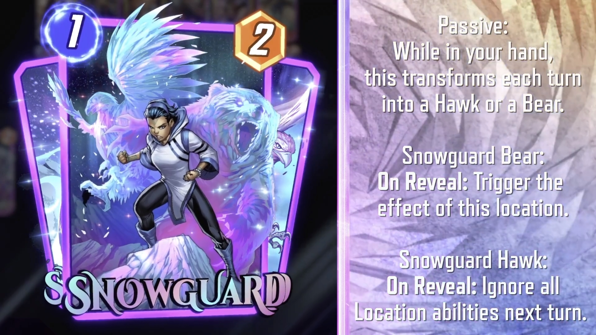 First, the card will change each turn you do not use it. Snowguard will start out as either a Hawk or a Bear and transform each turn. The Bear and Hawk have their own unique ability, meaning you may have to wait a turn to play it for its desired effect.