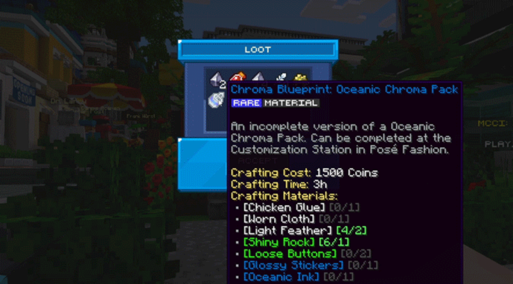 Players can also use item variants to change certain aspects of MCC Island items. Aspects that may be changed include features like the entire model and design or simply the particles on the item. Variants can only be unlocked through Blueprints.