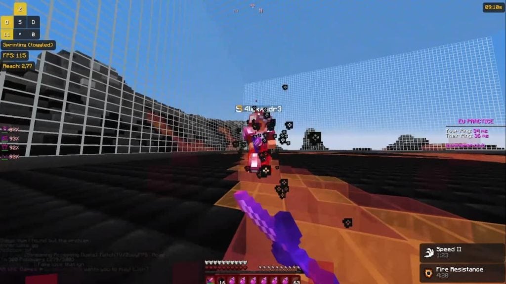 Although PvPLounge isn’t as well known as the Minecraft clients below, that doesn’t mean it’s bad. It has one of the smallest player bases but one of the most attractive UIs. The UI is blue and takes over some of your options on the screen, but it is pleasing to look at. Players can use basic Mods on PvPLounge, such as Toggle Sprint, Scoreboard, and keystrokes. PvPLounge also keeps your frames per second up to 60, which is on the low side compared to other Minecraft clients.