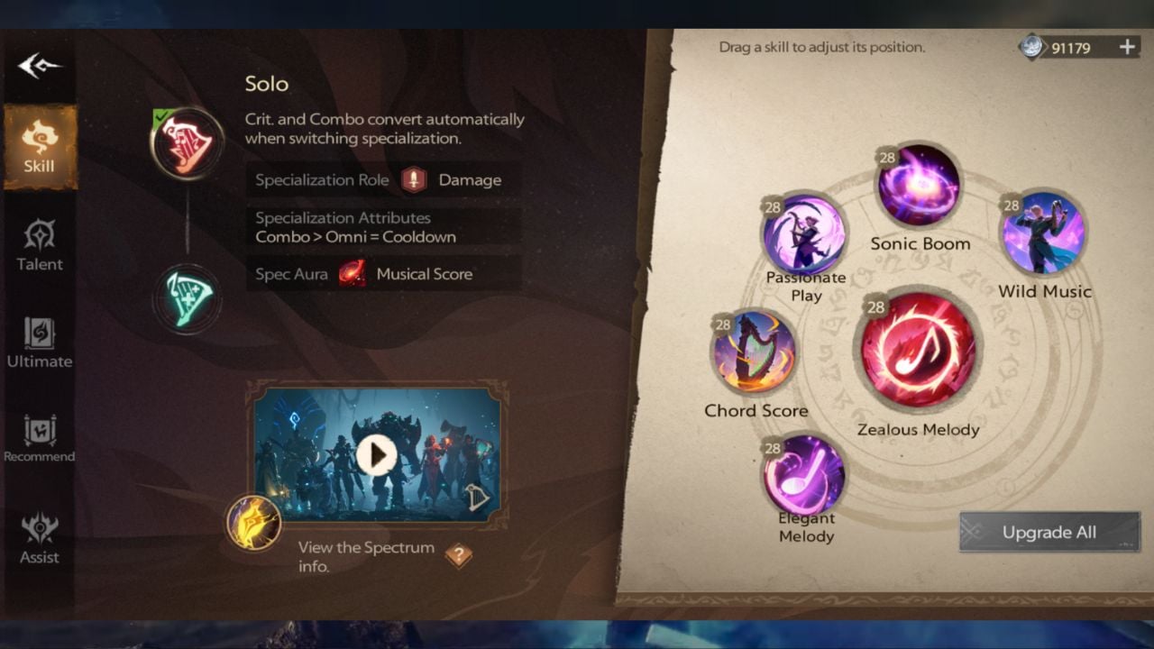 Under the recommendation section of your Bard skills, you’ll see two options you can enable for Solo—Powerful Melody and Elegant Melody. The high burst damage from Powerful Melody is incredible when you first start playing.