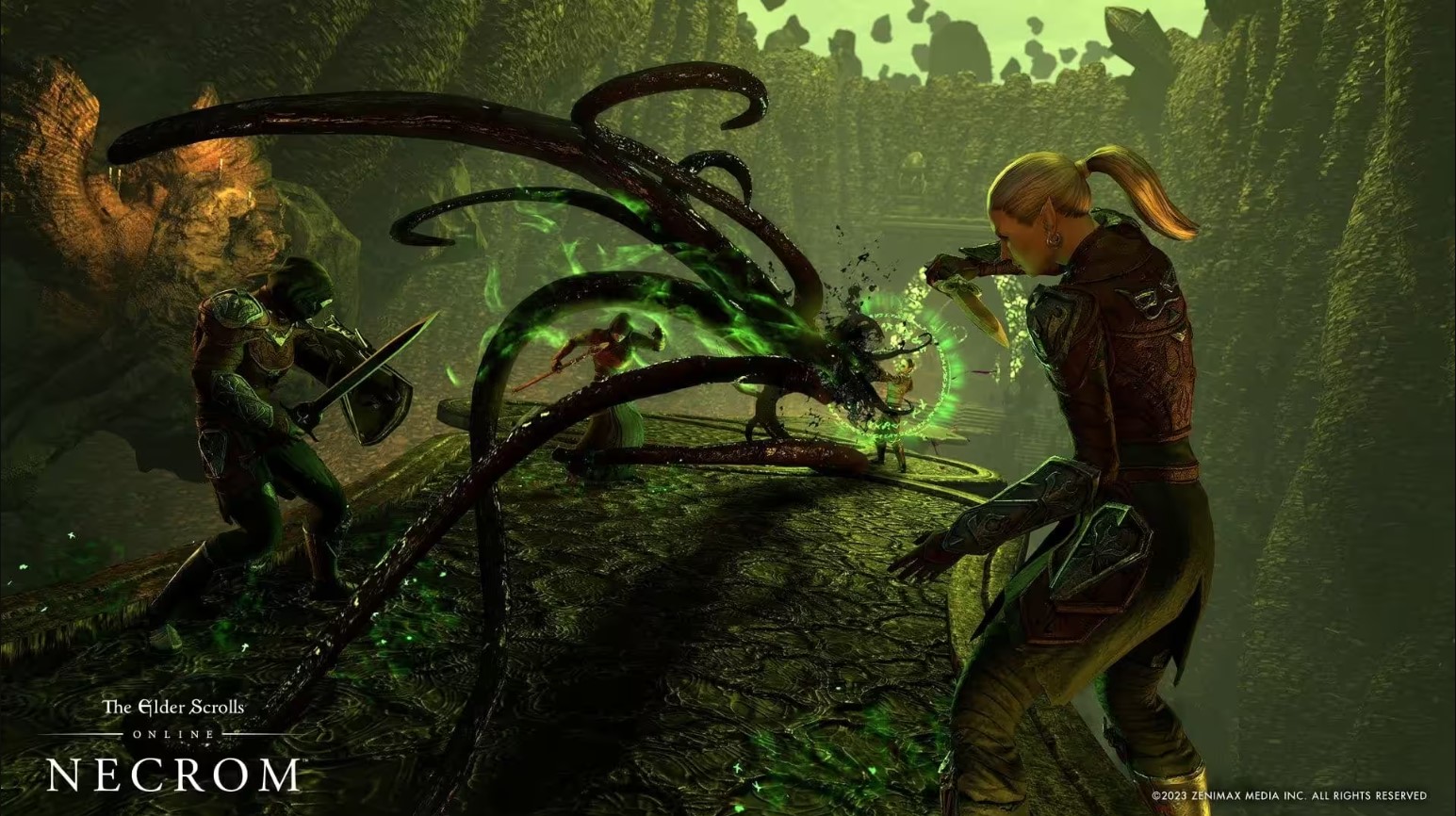 Enter the city and walk forward until you’ve entered the Necrom Wayshrine. Then turn right, and enter the tunnel on the left beside the guild trader. There will be a door at the end of the tunnel indicating it’s the Necrom Bindery.