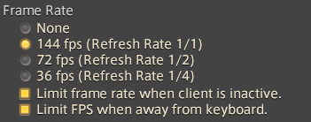 It’s also a good choice to tick “Limit frame rate when client is inactive” and “Limit FPS when away from keyboard”. Whether you’re waiting in a long queue or looking up guides, there are many cases in FFXIV where the game is open, but you’re doing something else, so it’s a useful option to limit the resources the game takes.