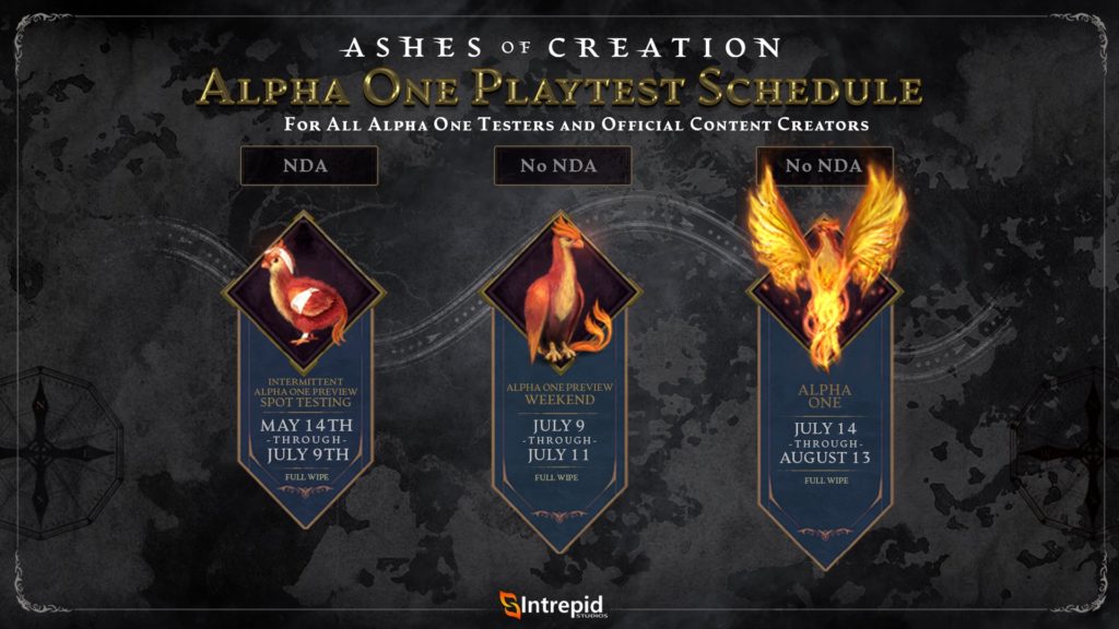 The initial preview weekend alpha will take place from July 9 to 11. Shortly after, Ashes of Creation will enter Alpha One spanning from July 14 to August 13. There will be two more alpha testing phases following this, and a pair of Beta rollouts before the game’s full release in the future, according to the release schedule on the game’s wiki.