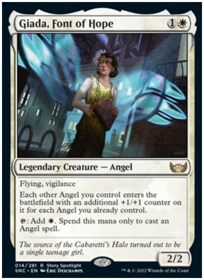 Giada, Font of Hope is the perfect card to tie the archetype together and bring it out of fringe status. This two-mana 2/2 is a decent early play that helps ramp into the more expensive Angels. Each Angel also enters with a +1/+1 counter for each Angel you already control. Giada helps an already snowball archetype run opponents over even quicker.