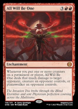 All Will Be One is a five-drop Mono-Red Enchantment that has slotted into a number of Commander decks. The Mythic Rare saw a price spike in February, but has since dropped back down, although not to the price it was prior to the spike.